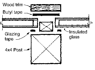 A key to this simple glazing system is a special aluminum-coated butyl rubber sealing tape designed for severe waterproofing conditions (sample included with your plans). This tape was developed for sealing modular buildings on the North Slope oil fields of Alaska. It allows you to build large leak-proof skylights and window walls using standard wood working tools. The system is easy to build and is forgiving of errors. It is also less costly than commercial glazing systems. This same system is being used by several west coast sunroom companies to build high-end custom wood sunrooms and greenhouses. You can do the same!